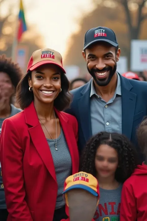 I need hd photo of beautiful black women caring a on hear hand giving to another person wearing red suits with black cap with m...