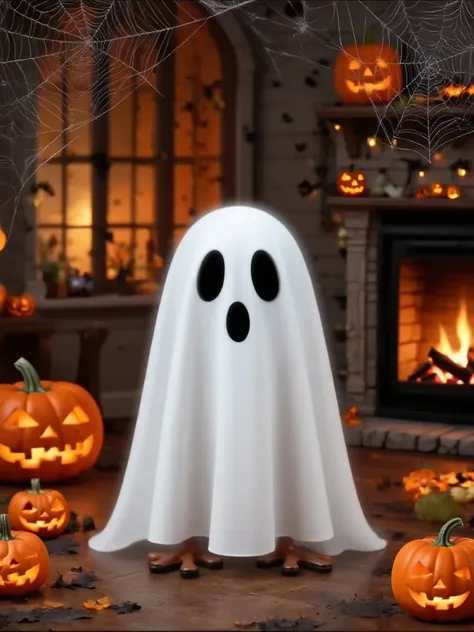 Ultra-detailed 8K real-life photography of a cute 3D Halloween specter sculpted with the meticulousness of movie concept art. Th...