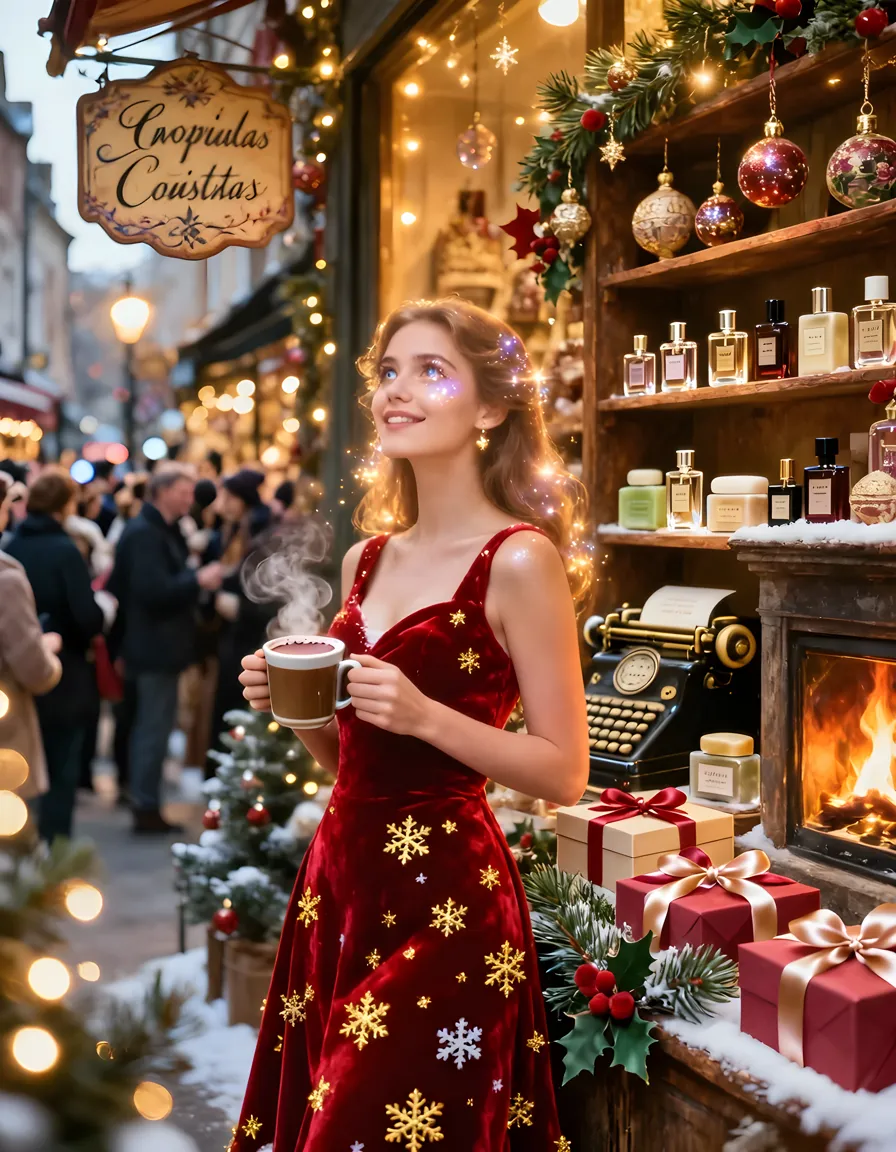 ultra-realistic, award-winning photographic quality, 16k realism, Christmas season, bustling luxury shopping mall interior, soft...
