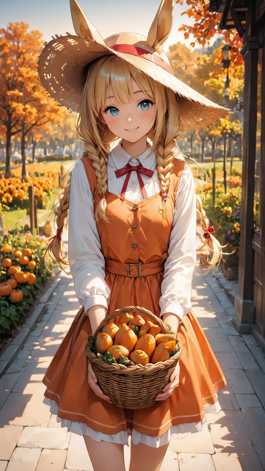 beautiful, 748cmStyle , (masterpiece:1.3), (vibrant harvest colors), A cute 19-year-old girl , **Harvest Blessing Bringer**, **...