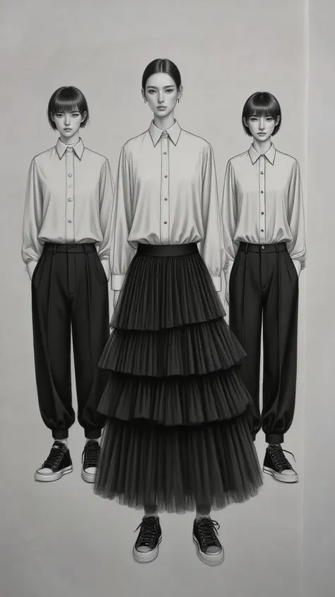 Utiliser la même fille garder les meme forme de son corp juste l’habiller différemment 1. Jupe longue fluide + pull léger 2. ...